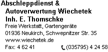 Adresse:Schwepnitzer Str. 3501936Neukirch (bei Königsbrück) Kamenz Branche:Autoverwertung www.wiechetek.de Fax: 035795 46241 Tel: 035795 42458