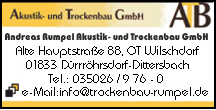 Adresse:Alte Hauptstr. 8801833Dürrröhrsdorf-Dittersbach Dresden Branche:Akustik- und Trockenbau info@trockenbau-rumpel.de Fax: 035026 976-15 Tel: 035026 9760