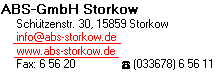 Adresse:Schützenstr. 3015859Storkow (Mark) Branche:Blechbe- und -verarbeitung www.abs-storkow.de info@abs-storkow.de Fax: 033678 65620 Tel: 033678 65611